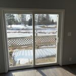 New sliding door with view of community pond.